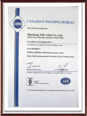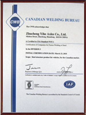 Canada welding Bureau certificate, re-audited every 1-2 years